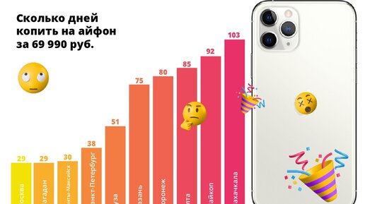За сколько дней можно накопить в разных регионах нашей необъятной, чтобы купить новенький iPhone 13. Хорошо, что есть неизменные вещи в нашем мире: новый айфон всегда дороже предыдущего. Редакция канала «ФинЗОЖ, ништяки и плюшки» обратилась к экспертам Центра финансовой грамотности и попросила их рассчитать, за сколько дней в разных регионах России, можно купить себе новый iPhone 13. Сколько надо работать на айфон и при этом не умереть от голода? Для покупки мы выбрали базовую модель 128 ГБ по цене 79990 рублей...