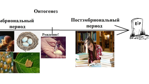 Онтогенез — буквально вся жизнь организма от начала существования до смерти. Причем для нас с тобой онтогенез начинается не с момента рождения — а с момента зачатия. Только представь, когда-то очень давно ты был буквально одной клеткой, словно амеба, а сейчас вырос до такого сложноорганизованного существа. Все живые организмы (вирусы пока оставим) — рождаются, растут, реализуя генетическую информацию, и… умирают. Но на Земле огромное разнообразие жизненных форм и их онтогенез очень сильно отличается...