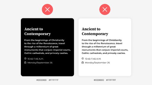 Чистый черный цвет фона или текста в сочетании с белым может вызывать значительное раздражение, дискомфорт для глаз пользователей, особенно при длительном чтении. Это связано с максимальным контрастом между ярким белым цветом (100%) и черным (0%), к такому контрасту наш глаз не привык в повседневной жизни. В результате наш зрительный аппарат вынужден работать на износ, чтобы приспособиться к таким необычным условиям чтения.