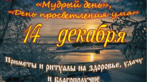 14 декабря - Приметы, обычаи и ритуалы, традиции и поверья дня. Все праздники дня во всех календарях.