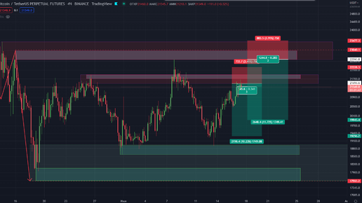 Для начала смотрим днёвку и определяем дневной тренд: Тренд считается нисходящим, пока график не закрепится над 23040, поэтому приоритетом для нас должны быть шорты...