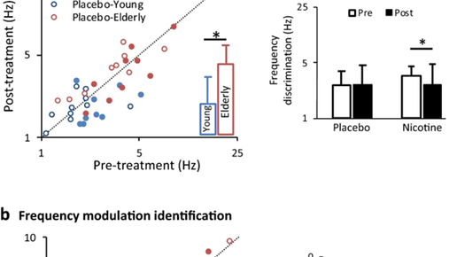 Аннотация Электрофизиологические исследования показывают, что никотин усиливает нервные реакции на характерные частотные стимулы. Предыдущие поведенческие исследования частично подтверждают эти результаты у молодых взрослых, показывая, что никотин избирательно усиливает слуховую обработку в сложных условиях прослушивания. Настоящая работа расширила предыдущую работу, включив в нее как молодых, так и пожилых людей, и оценила влияние никотина на дискриминацию по частоте и интенсивности звука. Гипотезы...