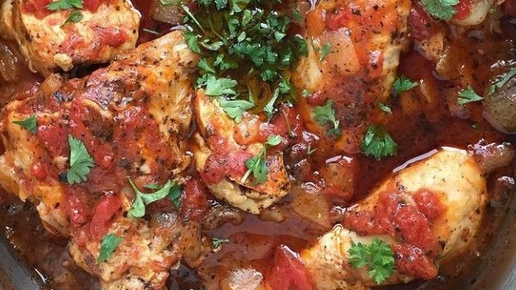 Блюдо на самом деле очень простое и сытное. На гарнир подойдет что угодно: от картошки до макарон и круп. Ингредиенты: 1 кг курицы 2-3 головки репчатого лука 3-4 помидора чеснок зелень петрушки, кинзы и укропа сухие травы (тимьян, базилик, орегано) хмели-сунели растительное масло соль вода или бульон Как готовить: 1. Разделать целую куриную тушку на крупные куски. Можно использовать 1 кг бедрышек, окорочков или только голеней. 2. Разогреть сковороду, смазать ее маслом, его немного. В горячее масло...