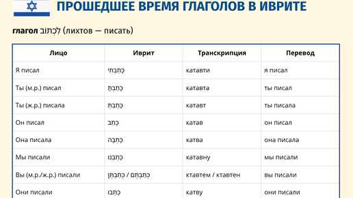 На первый взгляд система кажется сложной, но если разобраться в логике — всё становится просто. Давай разберёмся шаг за шагом! 1. Как образуется прошедшее время в иврите В иврите нет вспомогательных глаголов вроде did или was.