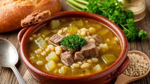 Пахнет детством, бабушкиной кухней и тем особым уютом, когда за окном мороз, а на плите стоит кастрюля с ароматным, наваристым супом. Это он — рассольник с перловкой, король советских столовых и главный антидепрессант в тарелке. Этот рецепт — не просто инструкция. Это билет в прошлое, где супы были по-настоящему наваристыми, а перловка — нежной и тающей во рту. Готовьтесь, ваш обед станет легендой! Рассчитано на кастрюлю 4 литра. СПОСОБ ПРИГОТОВЛЕНИЯ Мясо посолим, заливаем водой и поставим варить...