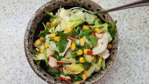 Салаты из свежих овощей являются неотъемлемой частью весенне-летнего рациона. Ежедневное количество употребляемой в пищу зелени и овощей в период острой их нехватки после зимнего авитаминоза должно составлять не менее 400 граммов. Причем желательно употреблять овощи разных видов, для более эффективного усвоения различных полезных веществ организмом. Интересный факт! Листовые салаты и пряная зелень содержат пищевые волокна, улучшающие пищеварение и мозговую деятельность. В состав кукурузы входят клетчатка,...