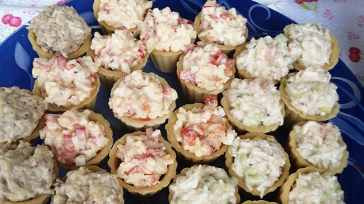 По сути начинка для тарталеток - это самостоятельный салат, который можно подавать в салатнике. Но иногда формат вечеринки требует более удобной подачи. Тарталетки идеально подойдут для фуршетного стола. Моё главное требование к салату-начинке - отсутствие крупных кусочков. В этот раз готовила три вида: 1. Тарталетки с креветками - королевские креветки слегка обжариваем и остужаем. Мелко режем болгарский перец и трём на мелкой терке яйцо. Креветки также мелко режем, заправляем майонезом. Начиняем тарталетки...