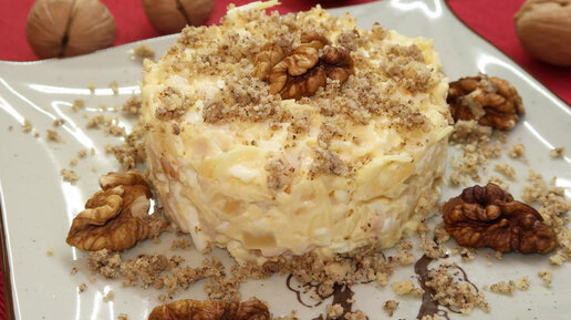 САЛАТ С КОПЧЁНОЙ КУРИНОЙ ГРУДКОЙ, АНАНАСОМ И ГРЕЦКИМИ ОРЕХАМИ НА НОВОГОДНИЙ СТОЛ. ИДЕАЛЬНАЯ ЗАКУСКА К ШАМПАНСКОМУ