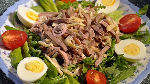 Обычно салат из свиного языка отличается сытностью. Лучше не готовить его, если есть желание перепробовать как можно больше салатов, и еще оставить место на горячее и десерт. Как мы знаем – язык обладает витаминами, которые необходимы организму...