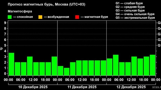 Сегодня геомагнитная обстановка на Земле остается спокойной — магнитные бури, которых ожидали ранее, не произошли. Как сообщил ведущий специалист центра погоды «Фобос» Михаил Леус, облако солнечной плазмы, выброшенное в ночь с 6 на 7 декабря, не достигло нашей планеты. По обновленным данным международных прогностических центров, это облако прошло мимо Земли, и в ближайшие дни никаких серьезных возмущений в магнитосфере не предвидится...