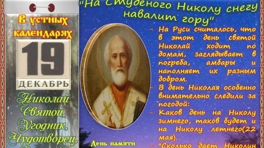 19 декабря - Приметы, обычаи и ритуалы, традиции и поверья дня. Все праздники дня во всех календарях.
