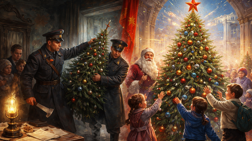 В конце 1920-х годов в СССР обычную новогоднюю ёлку официально признали вредной, идеологически чуждой и опасной для сознания советского человека, за её продажу и установку можно было получить штраф, выговор или визит людей, с которыми не спорят. Спустя всего пятнадцать лет это же государство сделало ёлку главным символом детского счастья и Нового года, превратив вчерашнего «врага» в обязательный атрибут праздника. Представьте себе страну, где за наряженное хвойное дерево можно нарваться на неприятности, и речь идёт не о какой-то экзотической диктатуре, а о Советском Союзе конца 1920-х годов...