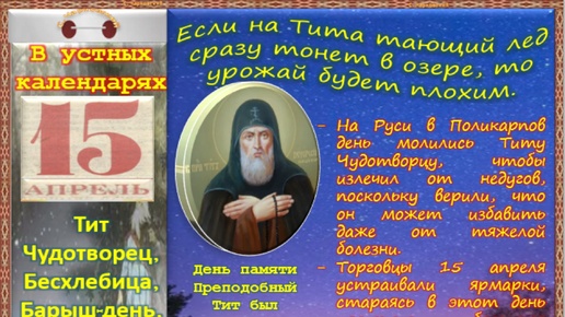15 апреля - Традиции, обычаи и поверья, связанные с этим днём. Все праздники, которые отмечаются в этот день в разных календарях.