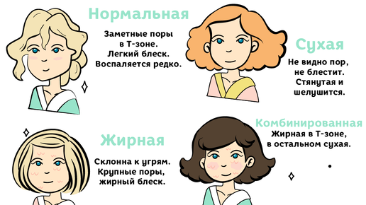 Почти все женщины полагают, что знают свой тип кожи — однако, как именно определить тип кожи лица, известно далеко не всем. С возрастом типы кожи лица могут изменяться, и выявить эти изменения подчас тоже не так-то легко. Безусловно, сама структура кожи у всех людей примерно одинакова, различается лишь интенсивность работы сальных желез. От этого-то и зависит, как выглядит кожа, какой тип кожи и какой ей требуется уход. Традиционно выделяют четыре типа кожи лица: Сухая кожа выглядит очень красиво – она матовая и нежная, ей не свойственен жирный блеск, а поры практически не заметны...