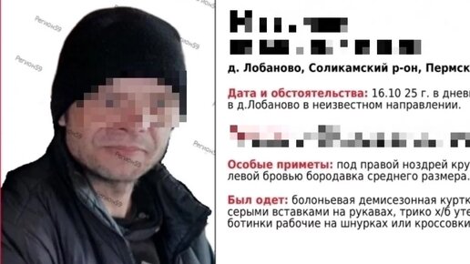 Поиск сутулящегося мужчины, который ушёл из дома и исчез в Пермском крае, был остановлен, сообщает поисковый отряд «Регион59 — поиск пропавших людей». Речь идёт о 44-летнем жителе Соликамского округа, который пропал 16 октября. Сайт perm.aif.ru рассказывал, что он ушёл из дома в деревне Лобаново в неизвестном направлении. С того момента о местонахождении мужчины было ничего не известно, а к его поискам подключились волонтёры. В ориентировке,...