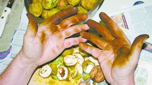 Осень - это сезон орехов. В то время когда на орехах еще есть зеленая кожура и вам необходимо её очистить, вы можете столкнуться с проблемой "чёрных рук". Ваши руки окрашиваются в тёмный цвет, так как в ореховой кожуре содержится достаточно большое количество йода. Отмыть руки после очищения грецких орехов очень проблематично. Если вы не займётесь этим сразу, то вам придется неделю ходить с коричнево-черными пятнами на руках. В интернете существует множество способов. Можно попробовать отмыть руки лимонной кислотой или лимонным соком...