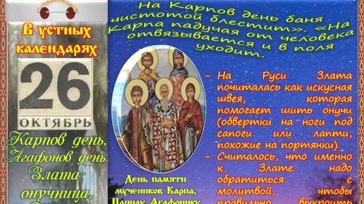26 октября - Приметы, обычаи и ритуалы, традиции и поверья дня. Все праздники дня во всех календарях.
