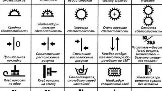 В данной статье будет подробная расшифровка всех обозначений на обоях, имея такие знания вам проще будет посчитать необходимое количество рулонов, узнать из какого материла они изготовлены, какие обои лучше покупать для декорирования разных помещений, какой необходим уход в дальнейшем и т. д. Внизу статьи будет таблица. Начну со значков волна (влагостойкость) - это обои, которые можно клеить в помещении с повышенной влажностью и конечно мыть в перспективе. 1 волна — водостойкие не боятся попадания воды их легко можно почистить влажной салфеткой или губкой без моющих средств...