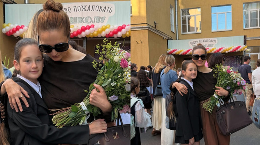 Если в вашей семье есть школьник, то для вас сегодня радостный и одновременно грустный день. 1 сентября означает, что лето закончилось, а школа - началась. В этом посте подборка наших знаменитостей, которые сегодня отвели своих отпрысков в школы. Недавно овдовевшая Виктория Исакова (её муж и отец дочери Варвары режиссёр Юрий Мороз недавно ушёл из жизни) отвела дочь в школу. Актриса всегда отлично выглядит, и этот раз не стал исключением. Коричневые брюки, шоколадная блуза, брендовая сумка в тон и большая охапка цветов...