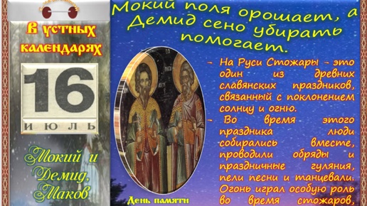 16 июля - Традиции, обычаи и поверья, связанные с этим днём. Все праздники, которые отмечаются в этот день в разных календарях.