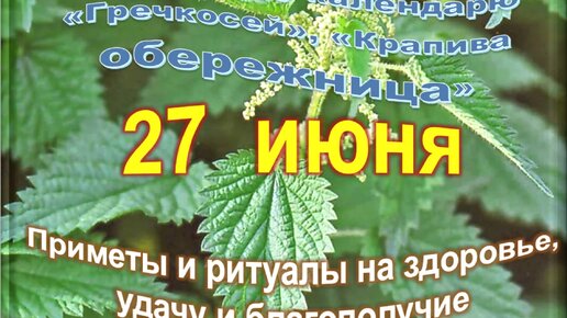 Сегодня 27 июня 2022 года, 178 день 2022 года по григорианскому календарю, 13 июня юлианского календаря (по старому стилю). 28-й лунный день. 9 Солнечный День 4 солнечного месяца очищения источников вод. Приветствую тебя мой гость. Сегодня День недели - понедельник, да не простой, а «День Крапивы-обережницы». Предки проводили в этот день специальный обряд "заклинания" крапивы. В этот день, если не было дождя, а светило солнышко, женщины собирались на рассвете и рубили крапиву, которую после использовали для различных целей...