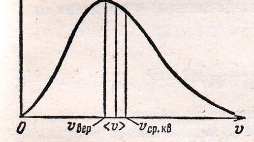 Молекулы газа находятся в непрерывном хаотическом движении. Вследствие столкновений с другими молекулами скорость каждой молекулы за секунду принимает множество случайных значений. Молекула может иметь малую скорость, может иметь очень большую скорость, но, согласно теории вероятностей, таких молекул мало. Большинство молекул будут двигаться со скоростями близкими к средней. Посмотрим на рисунок объясняющий это. По оси абсцисс отложены возможные значения скоростей молекул газа. По оси ординат откладывается величина, называемая функцией распределения молекул газа по скоростям...