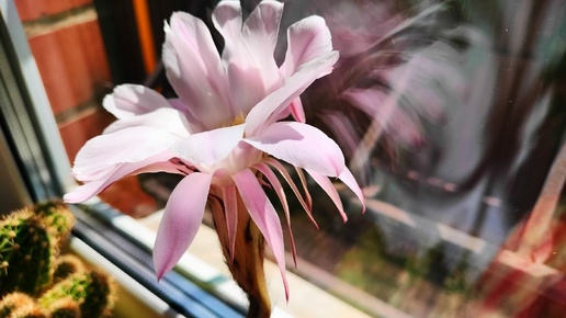 Удивительное все же растение кактус — мягким и нежным его точно сложно назвать — стоит ощетинившись иголками, нахмурившийся, нахохлившийся... Год так стоит, два, три... А потом вдруг просыпается что-то доброе в его колючей душе и между острых колючек появляется маленький бутончик. Как взъерошенный малыш, этот бутончик выглядит чем-то инородным и трогательным среди острых, торчащих во все стороны колючек и совсем непонятно еще каким он будет когда вырастет... Но время идет и этот малыш растет не по дням, а по часам — тянется к свету маленькой пушистой змейкой...