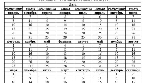 Календарь беременности(стельности)коров Таблица беременности коров