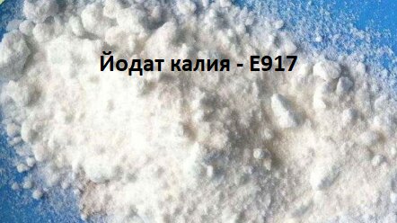 В большинстве стран она запрещена, у нас не разрешена для производства, но продукты, ее содержащие, к нам могут попадать с Украины, где она разрешена. Это пищевая добавка изначально использовалась для улучшения свойств муки, но сейчас в таком качестве уже не используется. Почти во всем мире Е917 вообще не применяется в пищевом производстве, так как в больших количествах она вредная для здоровья. Йодат калия – это сильнейший окислитель. Его используют сейчас в основном для производства жидкостей...