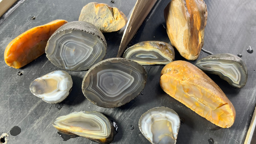 Всем привет! Сегодня вас ждет тринадцатая часть выпуска про распил камней. И как вы скоро увидите, число 13 для меня оказалось счастливым. ☺️ Камни в этом выпуске меня очень порадовали и удивили. После распила одного камня мне приходилось останавливаться, перевести дух от увиденного и только потом приступать к следующему камню. Не буду тянуть, давайте сразу перейдем к делу. Сегодня я приготовила для вас четыре агата из моих летних находок и одну деревяшку (окаменелое дерево). И так первый камень...