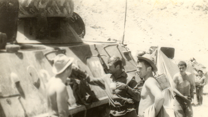 "Кандагар: как все начиналось... Взгляд лейтенанта" ГЛАВА 5 КАНДАГАР Сплю до обеда. Встаю с чугунной головой и бреду умываться на речку, благо журчит в десяти шагах по камешкам. Ледяная вода бодрит и я, продравши глаза, осматриваюсь: куда попал? Полк, теперь мой полк стоит на берегу мелкой пересохшей речушки в бестолковом ,на первый взгляд ,нагромождении машин и палаток. Идет обычная лагерная жизнь. Дымятся кухни, какие-то бойцы чумазыми муравьями копошатся в машинах; командиры , матерясь, кого-то строят, а кто-то на речке стирает свои пожитки...