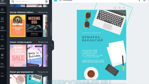 Canva скачать бесплатно Canva – отличный сервис для создания графических дизайнов документов и изображений высочайшего качества. Удобный и функциональный редактор с многогранным спектром возможностей позволит легко создавать печатные макеты, картинки и документацию с помощью миллионов фильтров, изображений, шрифтов, фигур, иллюстраций, фото и значков. Онлайн редактор Канва имеет профессиональные макеты для формирования дизайна картинок...