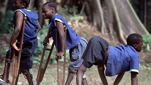 Полиомиелит. Дети на костылях и железные легкие