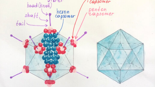 Общая структура капсида Сразу скажу, что статья сложная. Я её делаю больше для себя, чтобы лучше представлять мир вирусов. Так что если вам это тоже интересно и вы не боитесь трудностей, присоединяйтесь. Если нет, подождите немного, скоро поменяю тему. Итак, поехали... Об удивительной архитектуре капсида я уже рассказывала в статье «Аденовирус — это платоново тело». Основной строительный материал капсида — это его «кирпичик» или субъединица капсомер. Капсомер состоит из 3 субъединиц с молекулярной массой 120 килодальтон (Кд)...