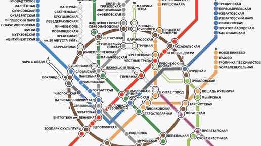 Увидел недавно альтернативную карту метро Москвы и решил посмотреть какие еще подобные карты есть. Покопался 5 минут в яндексе и нашел интересные версии. Здесь названия даны так, чтобы англоязычный человек смог произнести на инглише русское название, но думаю он скорее всего сойдет с ума, прежде чем поймет что за фигня тут написана. Попробуйте сами. Предупреждаю, нужен запасной язык. А тут все правильно на инглише, единственное, линии метро не выпрямлены, так как они есть на самом деле. Та же самая форма карты, только с русскими названиями...