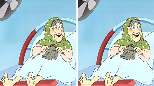 На картинке Бабушка Вяжет Шарф есть 4 отличия👀 попробуйте их найти. Задачка на внимательность.