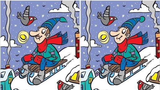 Очаровательный тест на внимание в любимой рубрике «Найди отличия». В сугробах сверкает сказка… Сегодня — новая зимняя история с загадкой! На картинке — весёлый человечек, который катается на санках. В глазах предвкушение, шапка сбилась набок, снег в разные стороны — настоящий зимний вихрь радости! Но вот незадача: две картинки — похожие, но не одинаковые. Где-то затерялись 8 отличий! Найдёшь ли ты их все? Проверь свою внимательность, попади в ту самую атмосферу зимнего детства и поделись, сколько...