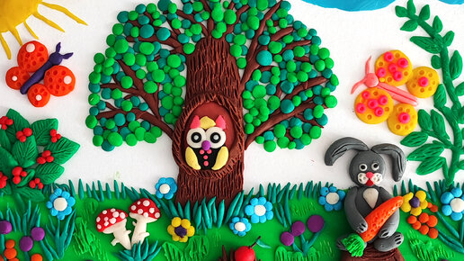 Аппликация из пластилина"Летний лес со зверями". Пошаговая инструкция с фото для детей.