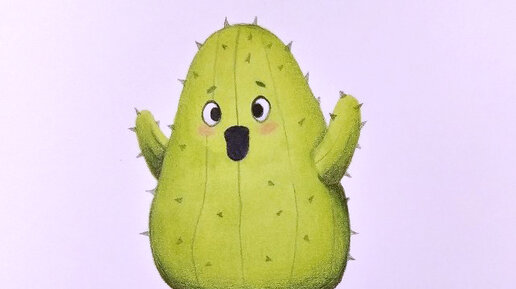 56й и 57й день 1page1day Всем привет! :) Вчера я рисовала гуашью монстрика. Картинку нашла в интернете и уж очень она мне понравилась, что прям захотелось нарисовать себе такого же монстрика, ворующего печеньки. Сегодня уже 56й день ежедневного рисования. Осталось еще много, но это ни сколько не пугает меня! Верю (ну по крайней мере настраиваю себя), что смогу продержаться до 1 февраля 2021! Сегодня я буду рисовать маркерами и цветными карандашами малыша кактуса. Как всегда начинаю со скетча: А дальше буду раскрашивать...