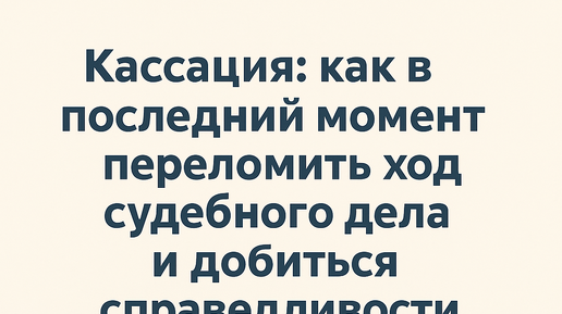 🚨 Кассация: как в последний момент переломить ход судебного дела и добиться справедливости