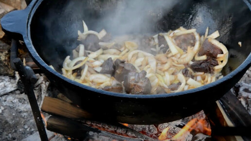 Самое народное блюдо в казане на костре – Нежное мясо с румяной картошкой или Казан Кебаб