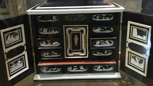 Странное название статьи, правда? Кабинет - это помещение для работы, спальня - место отдыха, даже если кабинет и спальня совмещены, почему кабинеты во множественном числе? Но выставка, проходящая в Синей спальне Зимнего дворца (зал 307), действительно называется "Европейские настольные кабинеты 16 - 19 веков". Потому что кабинет - это не только помещение для работы, но и предмет мебели, настольный шкафчик со множеством ящичков. Вот такой, например: Кабинет не предназначался для деловых бумаг и не был шкатулкой для украшений...
