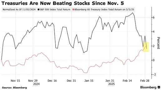 Инвесторы предпочитают казначейские облигации США, так как Трамп усилил торговые разногласия С момента избрания Дональда Трампа президентом США доходность казначейских облигаций США растёт быстрее, чем акции, и некоторые аналитики предполагают, что эта тенденция сохранится. С момента выборов 5 ноября показатель суверенного долга США по версии Bloomberg вырос на 2,1%, что значительно превышает рост индекса S&P 500 на 1,6%, включая реинвестированные дивиденды. Во вторник стало очевидно, что инвесторы...