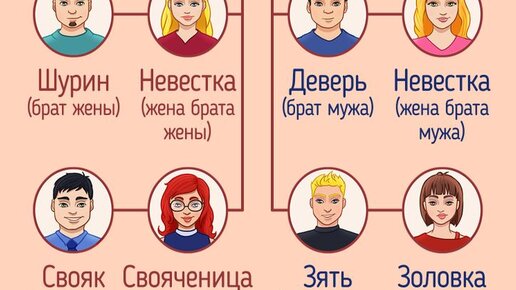 В наименованиях своих кровных родственников мы путаемся крайне редко: запомнить брата, дедушку или тетю ни для кого не составит труда. А вот разобраться в названиях новых родственников после вступления в брак бывает очень непросто. Хотя бы потому, что сейчас эти наименования не используются так широко, как раньше. «Бери и Делай» составил небольшое руководство, которое поможет понять, кто кому и кем приходится. Новые родственники после свадьбы Муж (супруг) — мужчина по отношению к женщине, с которой он вступил в брак...