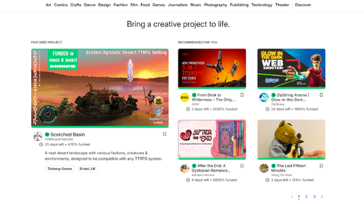 kickstarter com — одна из самых известных краудфандинговых платформ: люди публикуют проекты — от настольных игр и гаджетов до художественных и технологических инициатив. Поддерживаешь проект — даёшь деньги, обычно с ожиданием награды (reward), не прибыли. Это не биржа, не магазин — это способ помочь чьей-то идее начаться. ⚠️ ВАЖНО! Проект, который прошел проверку.