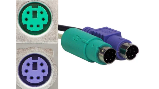 Сейчас большинство компьютерных клавиатур и мышей подключается через USB-порт или даже беспроводным способом. Но так было далеко не всегда! На старых компьютерах можно встретить клавиатуры с круглым фиолетовым штекером и мыши с круглым зелёным штекером, подключённые через специальные порты для клавиатуры и мыши. Этот разъём называется порт PS/2, как для мыши, так и для клавиатуры. На более старых компьютерах стандарта IBM PC/AT клавиатура подключалась через порт DIN-5, ранее использовавшийся в немецкой звуковой аппаратуре...
