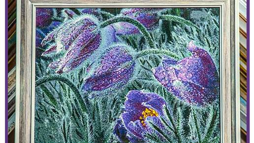 Здравствуйте, дорогие друзья! Наконец-то я покажу Вам работы, которые мы привезли из поездок и которые мы уже оформили. А в конце статьи я Вам покажу такую работу, которую нам давно уже не приносили! Эта картина будет как вишенка на торте — самое вкусное на десерт! Картина «Сон трава» Посмотрите на замечательную работу, ее вышивала Любовь из Казани! Называется «Сон трава» и это авторская схема. Посмотрите какая красота! Очень красивая, такая объёмная и мерцающая. Кажется, что вся-вся травка на картине покрыта капельками росы...