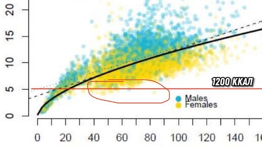 1200 калорий - и вес стоит? Вы не одни! Показываю график, который все объяснит 💥 Считаете каждую калорию, упорно держитесь на 1200 ккал, а стрелка весов замерла? Не спешите винить себя! Возможно, вы просто попали в ту самую категорию людей, для которых эта цифра - не дефицит, а... поддержка. Давайте разберемся, почему так происходит и что делать! Рассказываю, почему вы не худеете на 1200 ккал? Не пугайтесь! Исследование [PMID: 34385400] с наглядным графиком показывает: существуют люди (чаще это миниатюрные женщины), чья норма поддержания веса как раз около 1200 ккал...