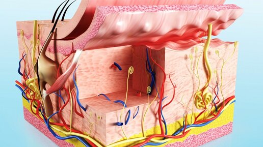 Кожа – покровная ткань, в процессе эмбриогенеза развивается из эктодермального листка, основная функция которой - защита от внешних факторов. Помимо защитной функции выполняет множество других, не менее важных. Кожа является иммунным органом: в эпидермисе находятся клетки Лангерганса, которые работают подобно макрофагам, распознают патогенные структуры и передают информацию «вышестоящим» иммунным органам. Кроме этого, регулирует водно-солевой обмен и терморегуляцию путем потоотделения, участвует в экскреции с потом продуктов обмена, эндокринная — синтез и накопление витамина D...