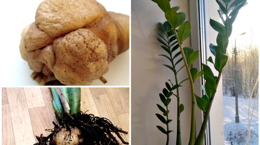 Как я замиокулькас "по частям" разобрала, разрезав горшок. Не думала, что клубни выглядят так странновато